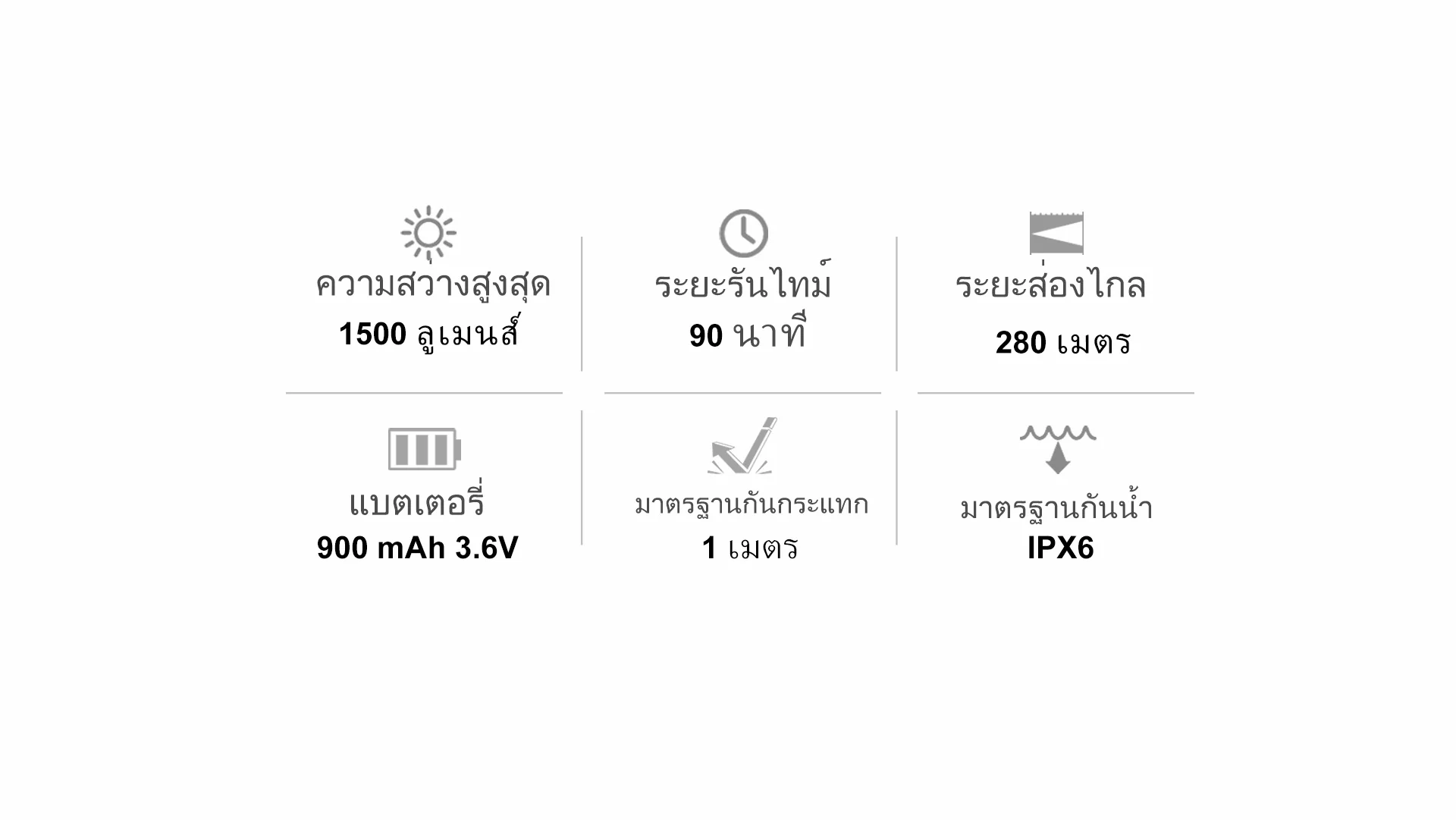 ความสว่างสูงสุด 1,500 ลูเมนพร้อมระยะส่องสว่างได้ไกล 280 เมตร เหมาะสำหรับการใช้งานทางยุทธวิธี
