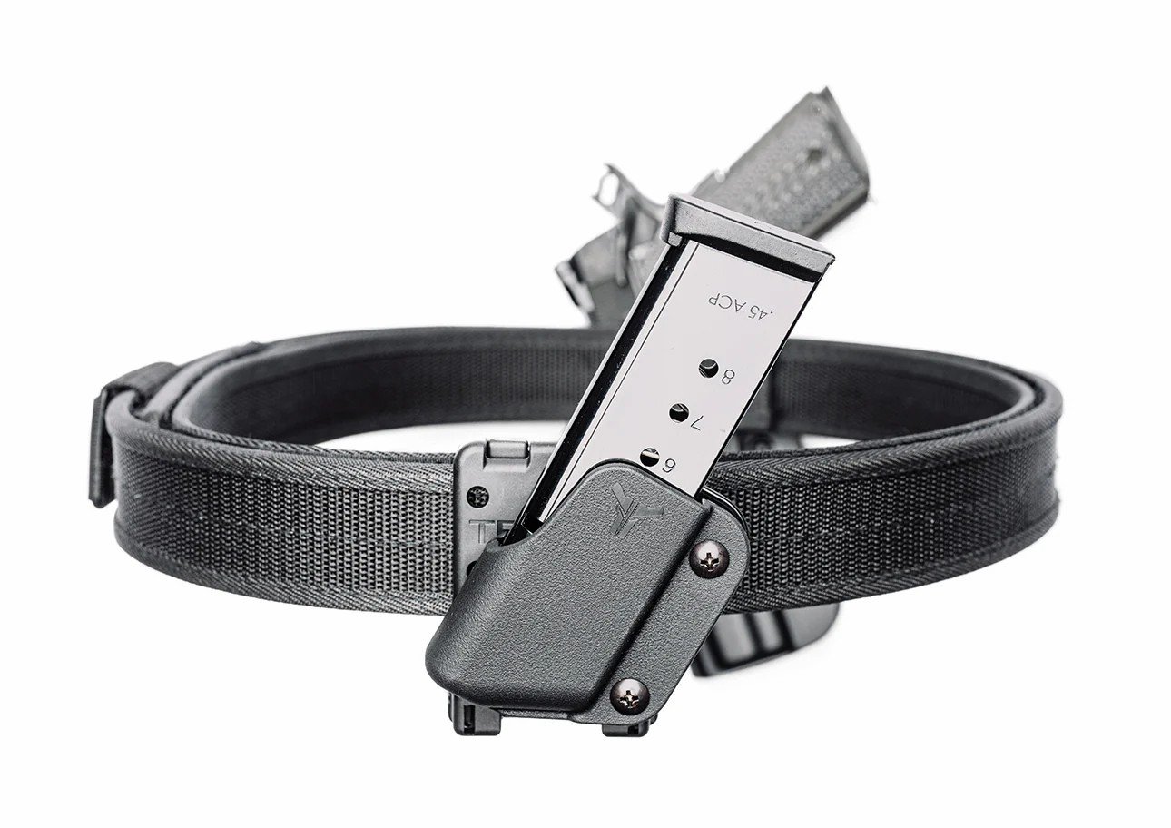 Blade Tech Signature Pro ซองแม็กกาซีนแบบเดี่ยวปรับองศาได้ มีช่องเว้าด้านหน้าเพื่อการดึงแม็กกาซีนที่รวดเร็ว ล็อกแม็กกาซีนด้วยการปรับความแน่นของน็อต เหมาะกับนักกีฬา IDPA IPSC และกีฬาอื่นๆ